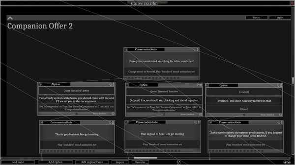 Игра также обещает глубокую систему диалогов, где выборы и их последствия играют ключевую роль. Вместо использования навыков речи, игрок может назначить своему персонажу несколько характеристик личности, которые влияют на диалоги. Успех или неудача в убеждении определяется уровнем персонажа и логическим аспектом ситуации.
