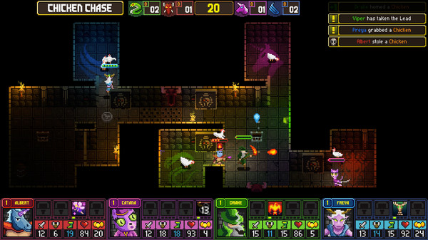 Каждый раунд в Dungeon League представляет собой новое задание, которое нужно выполнить для заработка очков команды. Например, в одном из заданий герои должны удерживать глаз, который при этом наносит урон. В другом режиме команды сражаются за контроль над курами, но можно и украсть кур у противника. Все режимы доступны онлайн, где можно сразиться с другими игроками или создать лобби для игры с друзьями.