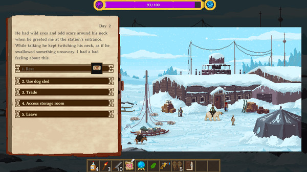 В игре вы сможете пройти уникальное приключение благодаря процедурно созданной истории. Исследуйте миры, каждый со своими собственными вызовами. Планируйте и снаряжайте свой поход, будьте готовы к любым обстоятельствам. Управляйте ресурсами, чтобы сохранить свою экспедицию и здравый рассудок. Посещайте деревни, торгуйте и общайтесь с местными племенами и цивилизациями.
