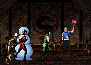 Если на локации Dead Pool сделать Stage Fatality, а затем и нажать Вниз, то вы услышите, как Дэн Форден скажет:"Oooh". Если на арене Kombat Tomb сделать Stage Fatality, оба игрока зажмут Вниз, то противник соскользнёт с шипов вниз.