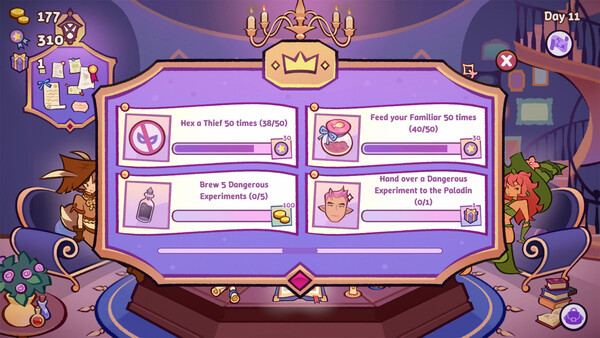 В этом уютном симуляторе магазина ведьм, где сочетается приготовление зелий и хаос малого бизнеса, вы станете владельцем своего дела. Ваша задача — открывать уникальные рецепты, варить зелья и продавать их, чтобы ваш бизнес процветал.