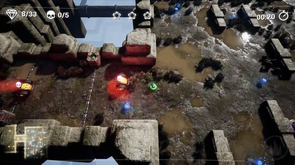 Управление в игре несколько необычное, но достаточно простое. Игроки могут перемещать мышь для управления движением персонажа. Чтобы стрелять и зафиксировать прицел в одном направлении, нужно нажать и удерживать левую кнопку мыши, не обращая внимания на направление движения. При стрельбе можно поворачивать прицел на 180 градусов, нажав правую кнопку мыши. Также, при переносе объектов (например, ключей) и движении платформ на транзитных станциях, управление осуществляется с помощью удержания левой кнопки мыши. Если нужна подсказка о местоположении целей уровня, достаточно щелкнуть средней кнопкой мыши (колесиком).