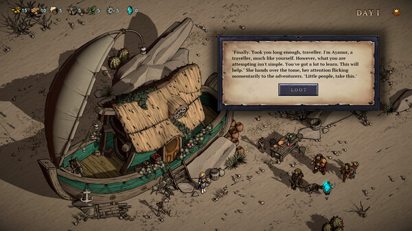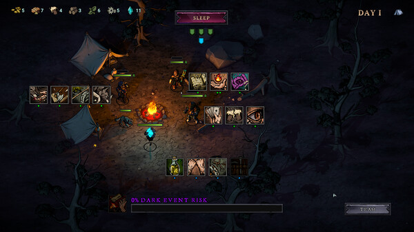 Стратегическая глубина в Blightstone также усиливается системным подходом к приключениям. Важно не только управлять здоровьем, но и следить за уровнями загрязнения, различными ресурсами, снаряжением, списком персонажей и их синергиями. Это критически важно для выживания в каждой игре.