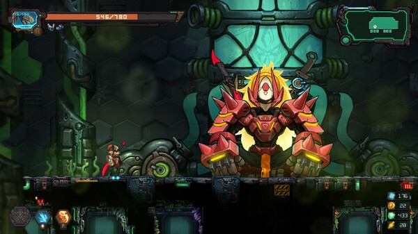 Кримсон должен преодолеть подземные сети, использовая уклонения, двойные прыжки и бег по стенам. Его робот можно оснастить более чем 26 специализированными оружиями, каждое со своей уникальной механикой и эффектами боя.