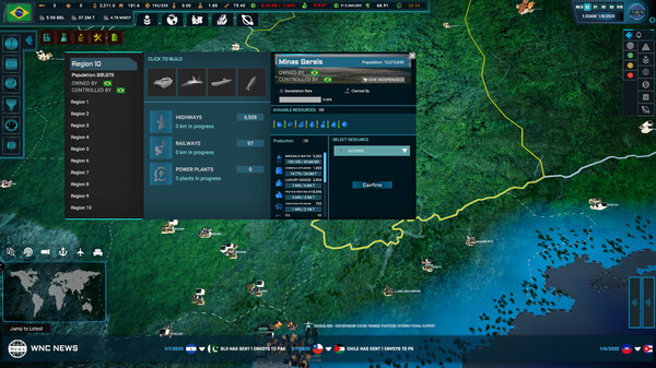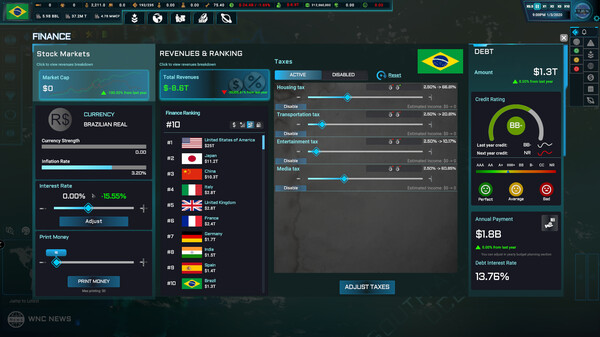 Анализируйте экономические показатели своей страны, стройте сооружения, корректируйте налоговое законодательство и контролируйте свои ресурсы. Отслеживайте темпы роста и инфляции, чтобы укрепить свою валюту. Управляйте, производите и торгуйте более чем 30 различными видами ресурсов.